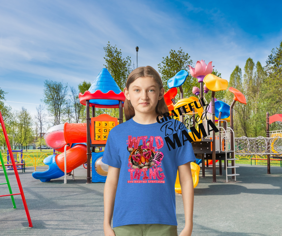 Celebrate love with the Wild Thing You Make my Heart Sing youth shirt! Featuring a cool tiger in heart-shaped sunglasses, this playful shirt is perfect for Valentine's Day. Let your little one's wild side shine while they rock this tee, spreading love and smiles wherever they go. Roar!